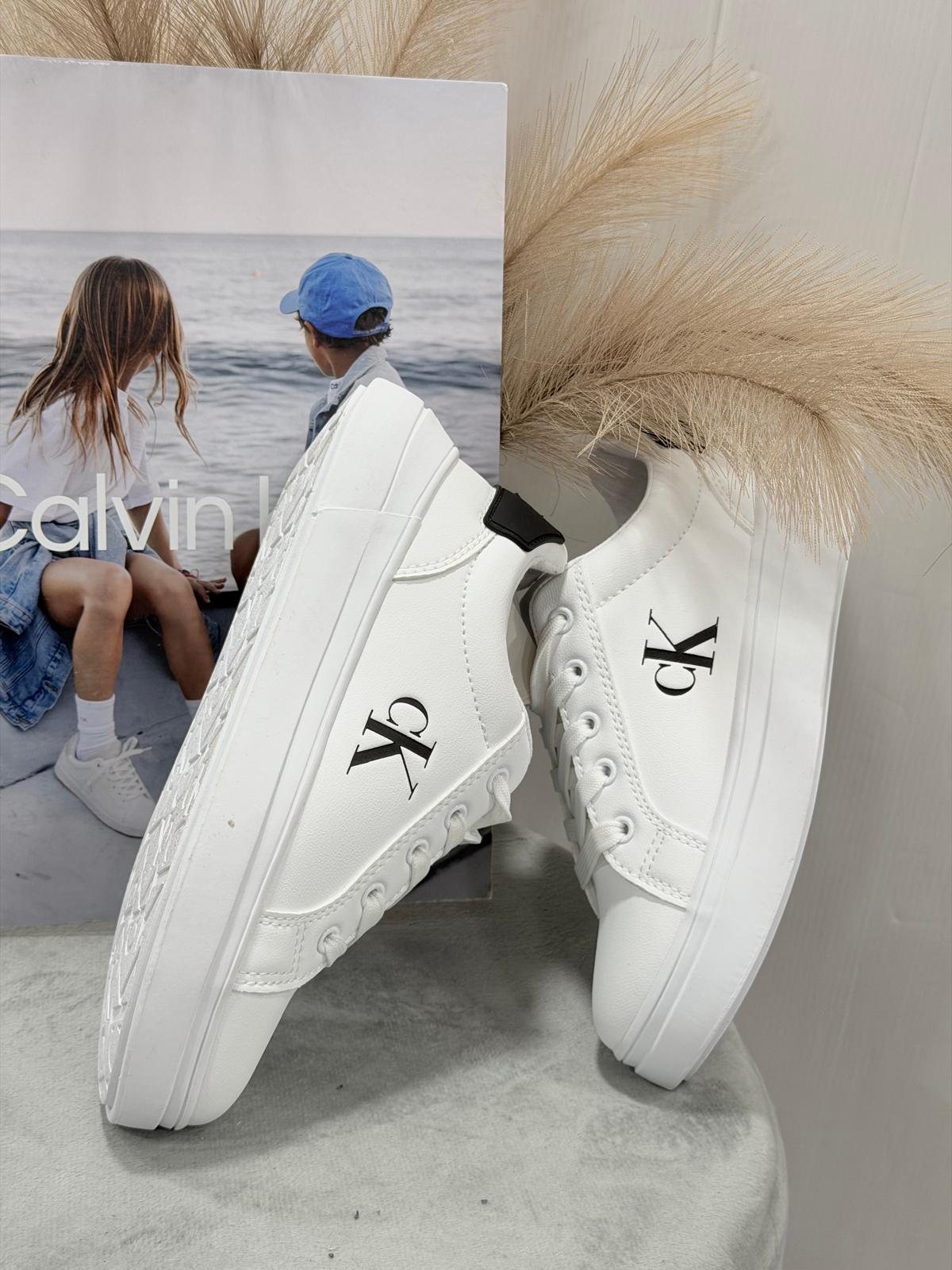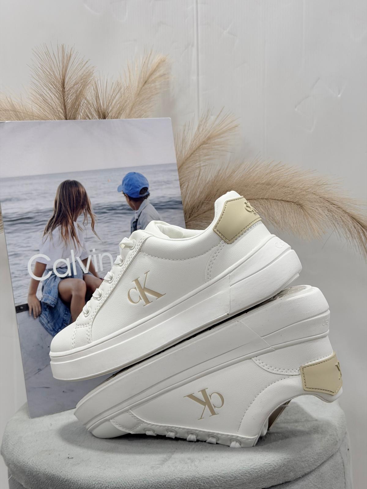 • logo Calvin Klein laterale, sulla linguetta e sul tacco
