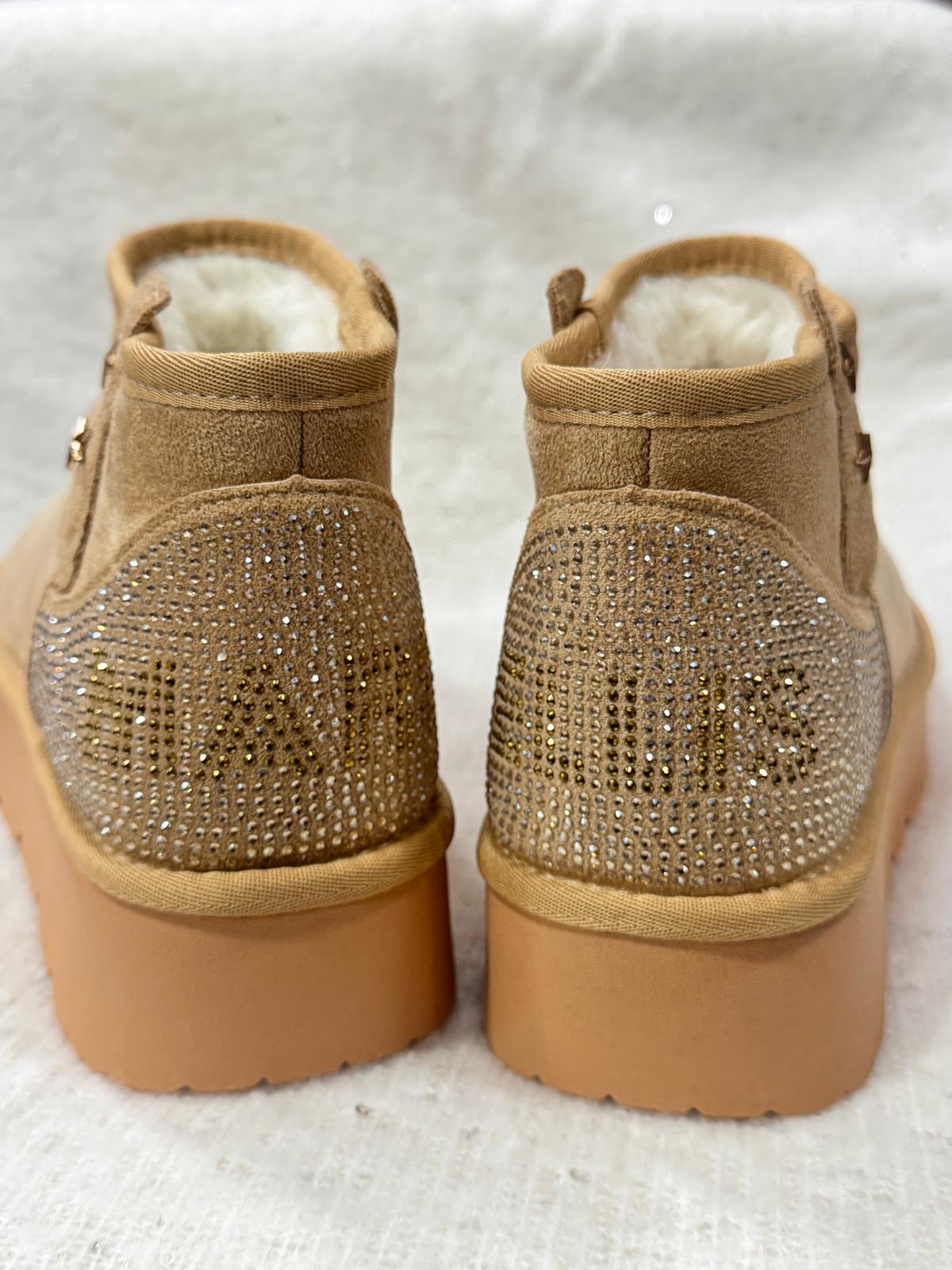stivaletti imbottiti, pelle scamosciata, tinta unita, Interno in tessuto sherpa, punta tonda, flatform, suola in gomma